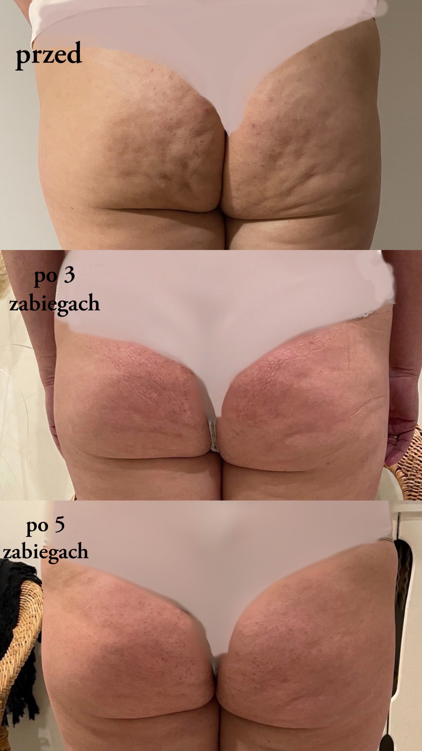 Zdjęcia przedstawiają efekty po antycellulitowych masażach bańką chińską w NA Studio.