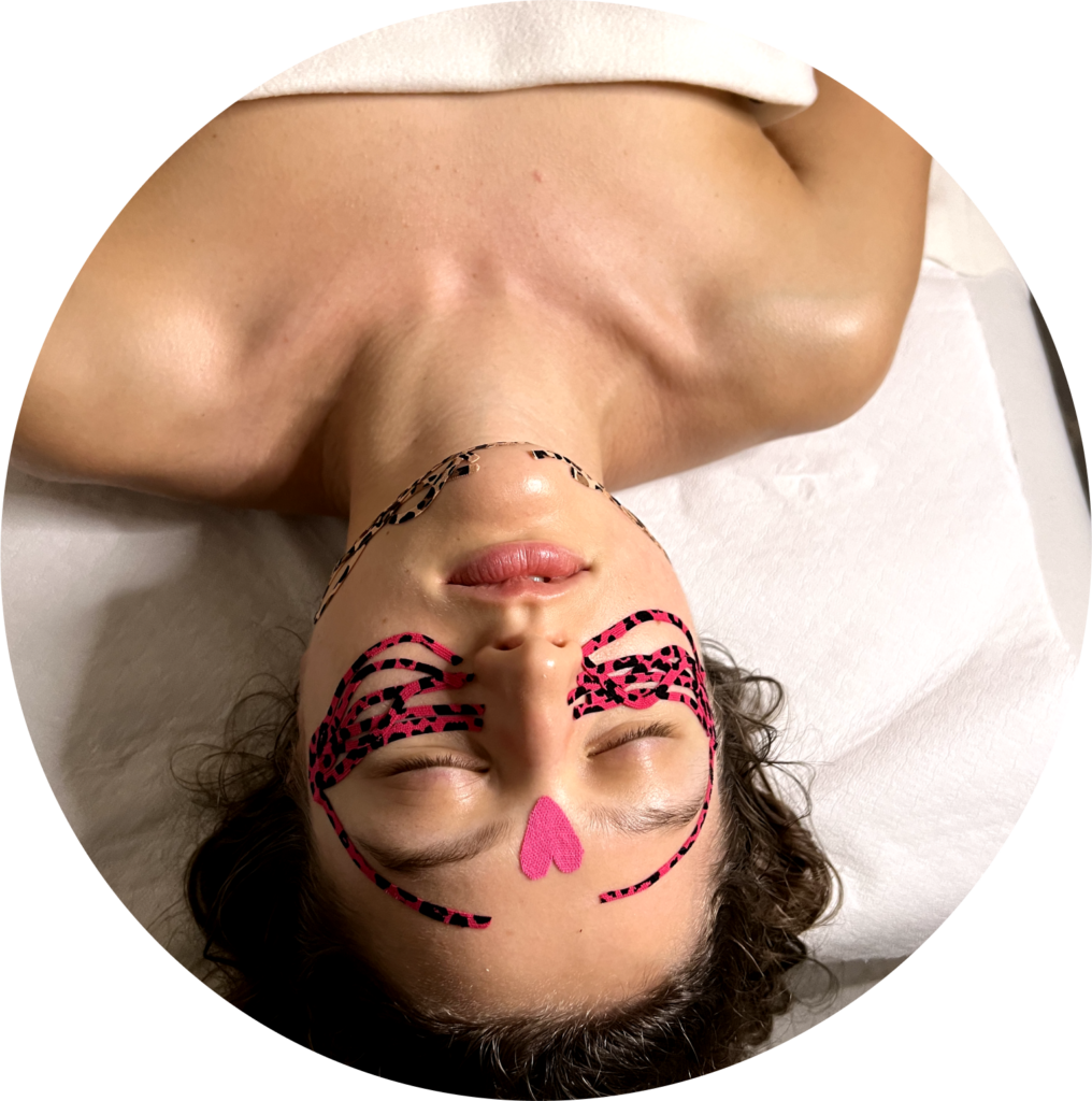Głęboki masaż twarzy w naturalny sposób odwracający i spowalniający oznaki starzenia. Określany jest niechirurgicznym japońskim liftingiem twarzy. Masaż obejmuje twarz, szyję, dekolt, kark i ramiona. Po masażu twarz oklejam taśmami kinezjologicznymi w celu poprawienia i przedłużenia efektów masażu.