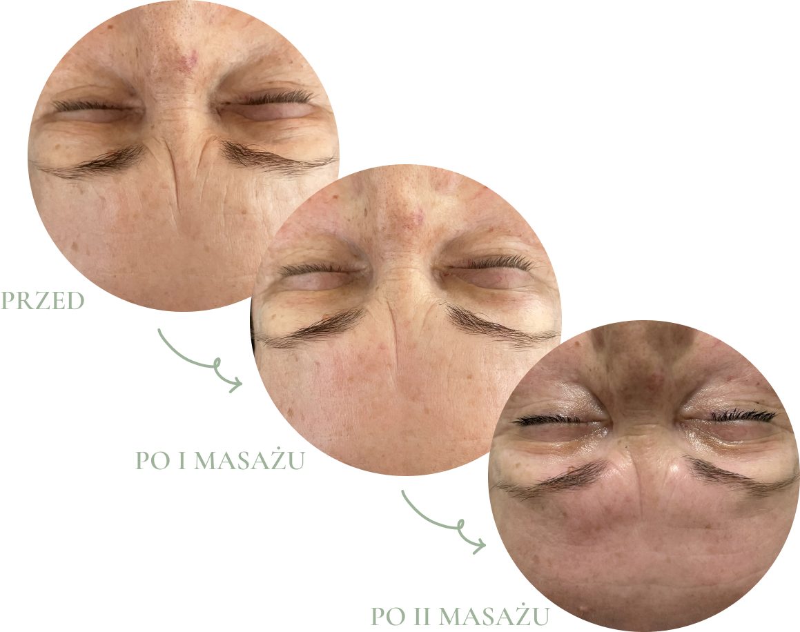 Efektami terapii jest twarz bez zmarszczek, twarz jędrna, o pięknym kolorycie, bez obrzęków i opuchlizny. Rozluźnione i zrelaksowane ciało oraz uspokojony umysł. To tak jakby cofnąć zegar o kilka lat…